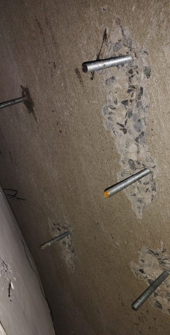 Six 200 mm-deep holes were then drilled through the concrete using one of Citi-Con’s powerful industrial Hilti drill machines. Thereafter, threaded bars were inserted and secured with chemical anchoring mortar that achieved full strength in just 30 minutes.