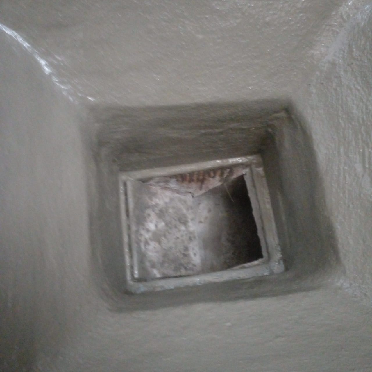 Once the coating has dried, the hopper entrance is widened until the steel base is reached so that damaged concrete can be removed using a grinder. Thereafter, a crystalline slurry is applied to the area.