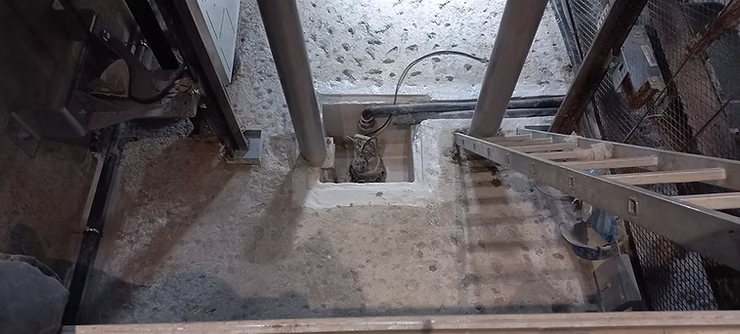 Citi-Con first washed the walls of the shaft with a high-pressure water spray. We then closed all the areas from where water was leaking with cementitious plugs. Next, a 45° fillet was installed in the lift pits to seal the wall to floor joint. This was followed by the treatment of the walls and lift pits with post-initial set applied colloidal silica (P3) technology.